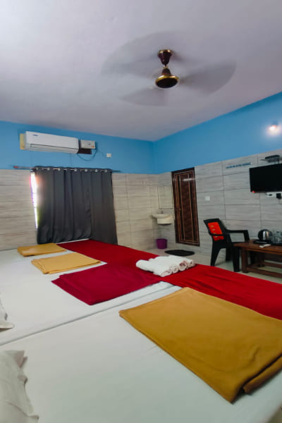 The 4 Bed AC Room is a comfortable and spacious accommodation option, ideal for families or groups traveling together who prefer a cool and relaxing environment. Designed to accommodate four guests with ease, the room features well-arranged beds, air-conditioning for year-round comfort, and ample space to move around freely. The thoughtfully planned interiors, clean furnishings, and soothing ambiance create a pleasant stay experience after a long day of travel or sightseeing. With a perfect balance of comfort, convenience, and functionality, the 4 Bed AC Room ensures a restful and enjoyable stay for all guests.